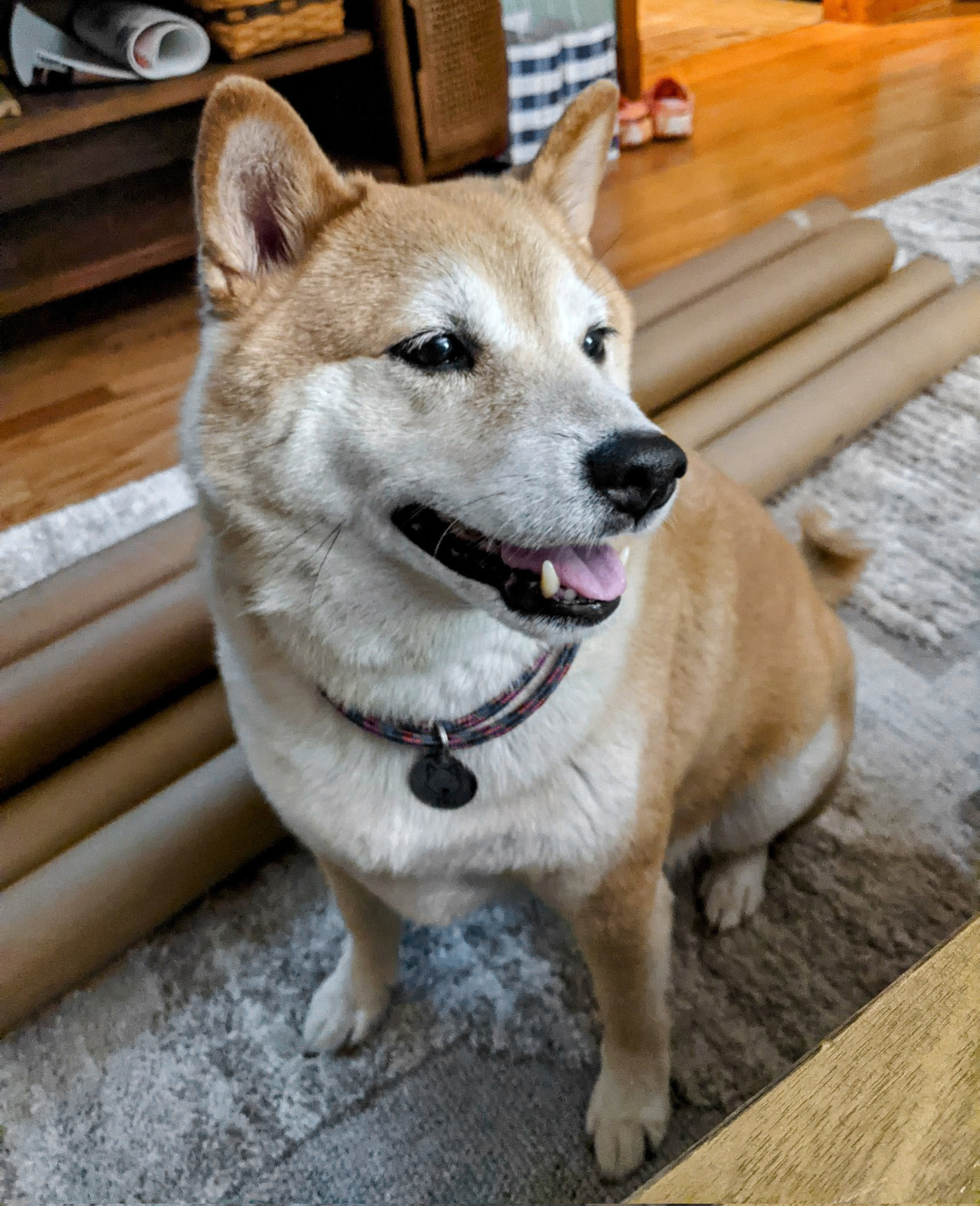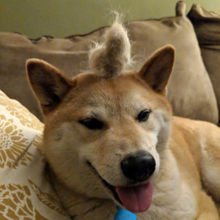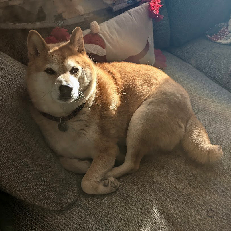 Fitzwilliam Smixham was born on Valentine's Day, a member of the ancient basal line of Nipponese Shiba Inu. Son of Easy Rider and Steel Magnolia, he was adopted into the house of Smixham in his first year, bringing joy to two grumpy artists. He was the perfect size.