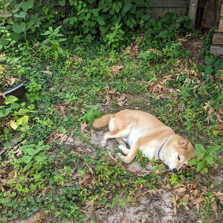 He spent his days zooming in his yard, chasing squirrels and deer, and sleeping in the sun. With his humans, he blazed every trail of the Gunpowder Falls, rolling in the fresh grass, and splashing in the muddy waters. He spent his night prowling the neighborhood in search for street sandwiches, playing keep away with a scrap of ravaged toy, and chasing his cats around the house with playful ferocity.